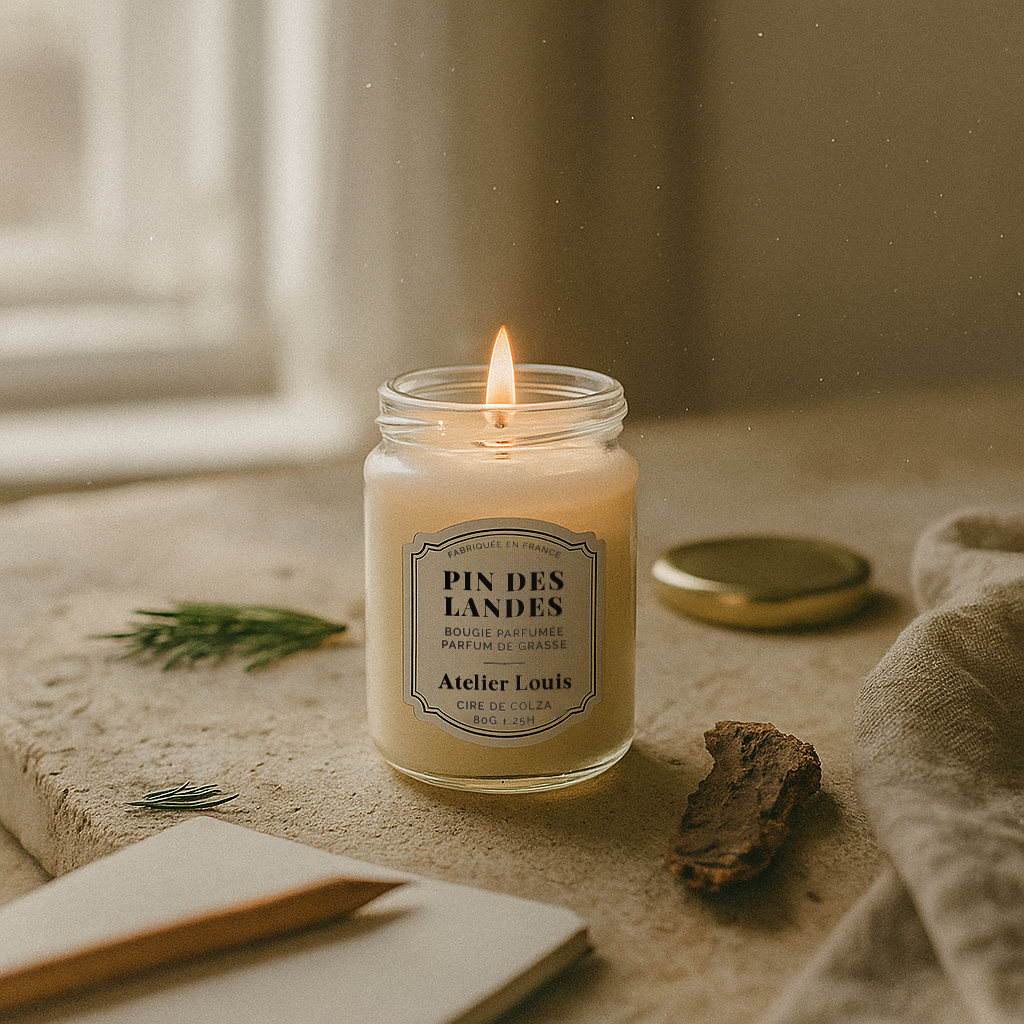 Quand l’agitation se fait trop présente, on ressent le besoin de nature, de clarté, de silence. La bougie parfumée Pin des Landes répond à ce besoin en diffusant une fraîcheur boisée, comme une promenade solitaire entre les pins. Elle reconnecte à l’essentiel, avec une senteur vive et structurante.